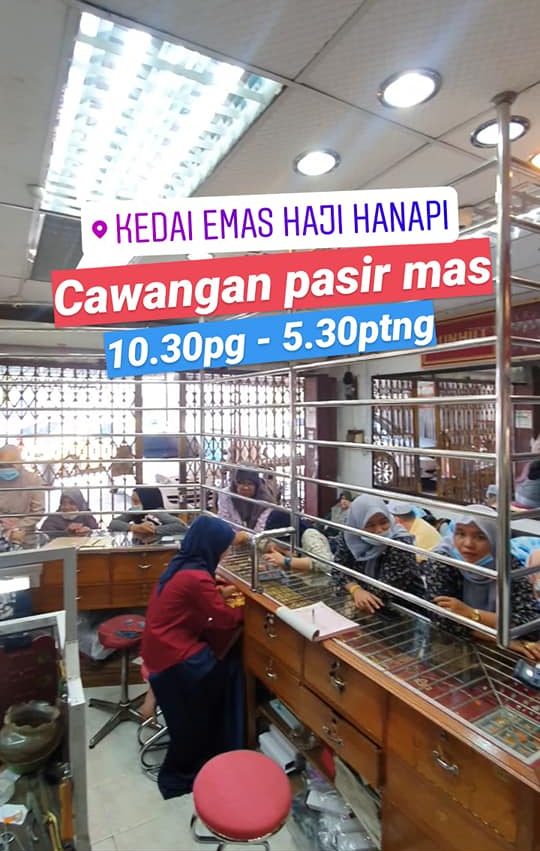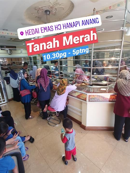 KAMI MENAWARKAN EMAS BERKUALITI PILIHAN TERBAIK ANDA & KELUARGA HUBUNGI KAMI 013-988 7569 kedaiemas_ hanapi Kedai Emas Hanapi kedaiemashanapi Kedai Emas Hj. Hanapi & Anak-Anak CAWANGAN Kedai Emas Haji Hanapi mempunya 4 cawangan iaitu di Tanah Merah, Tumpat, Pasir Mas & Tasek Raja. Anda boleh mendapatkan barang kemas pilihan anda dengan kedai emas yang berhampiran dengan rumah masing-masing. Kedai Emas Hanapi Tanah Merah Kedai Emas Hanapi Tumpat (Chabang Empat) Kedai Emas Hanapi Pasir Mas Kedai Emas Hanapi Tasek Raja